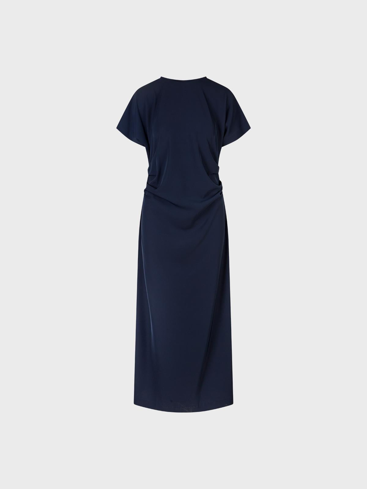 Abito in cady fluidoDrappeggi laterali Scollo a barca Spacco dietro