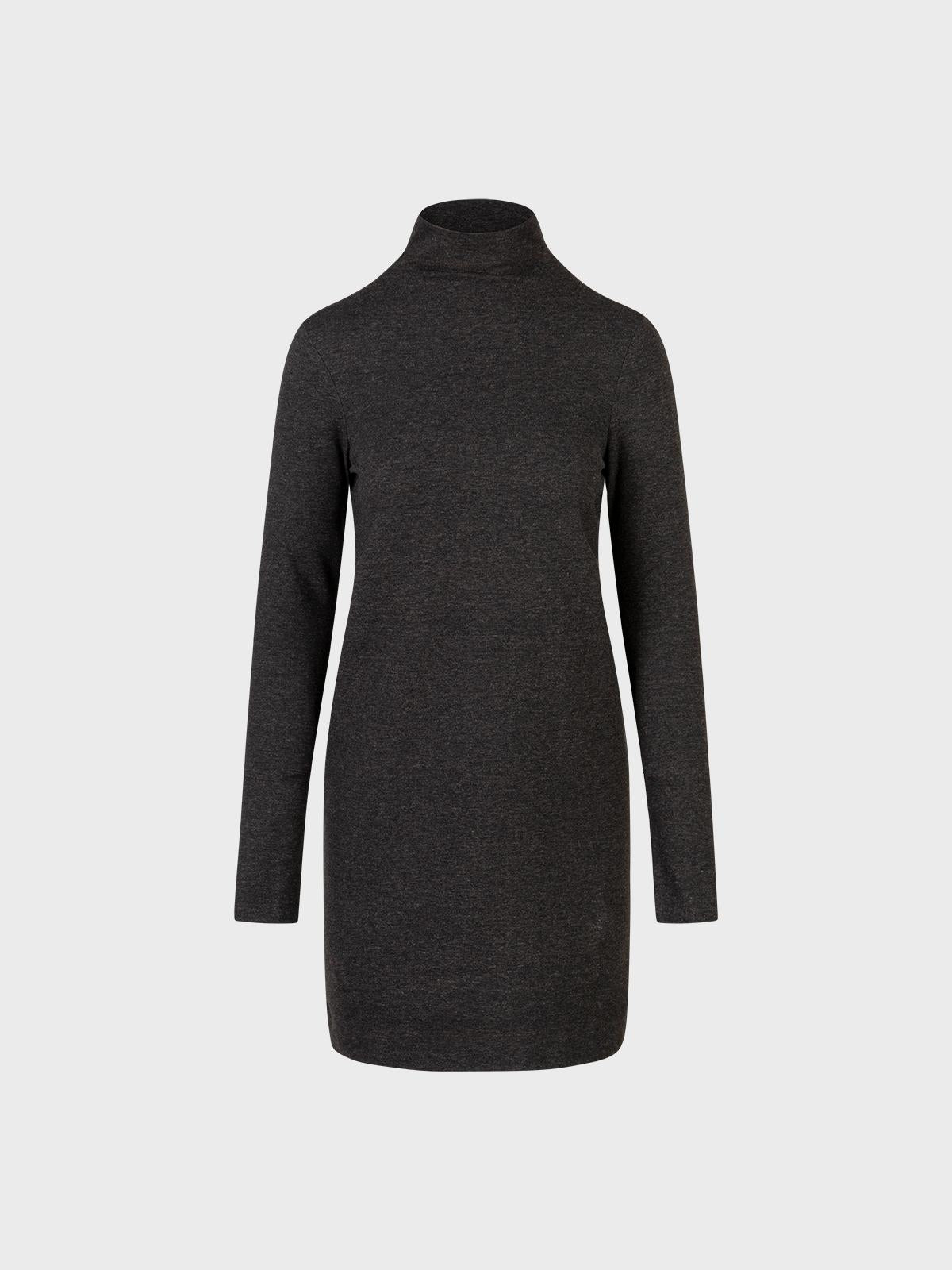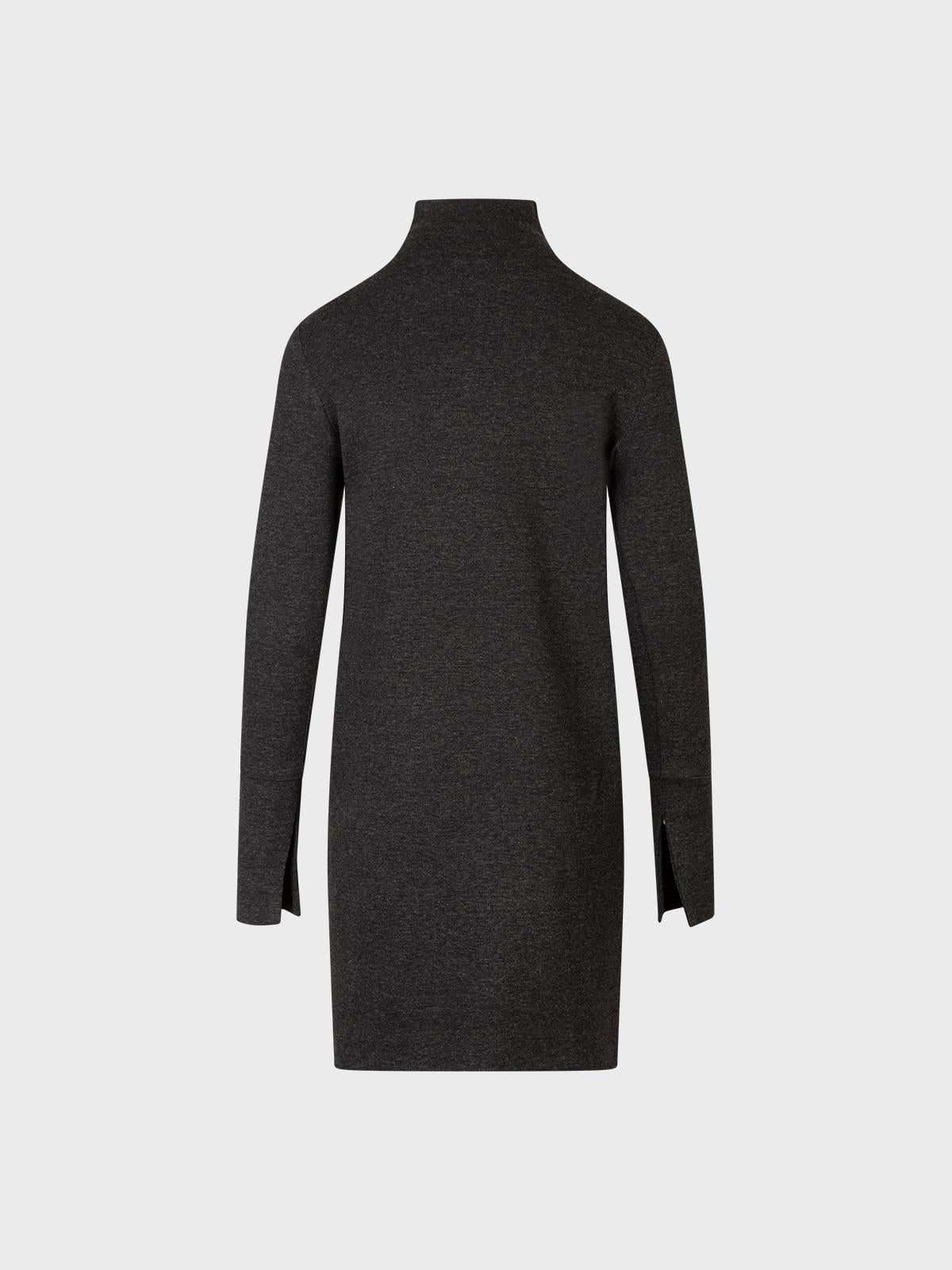 Abito in punto milano light tinto filo con scollo cratere,maniche lunghe e polsi alti doppiati