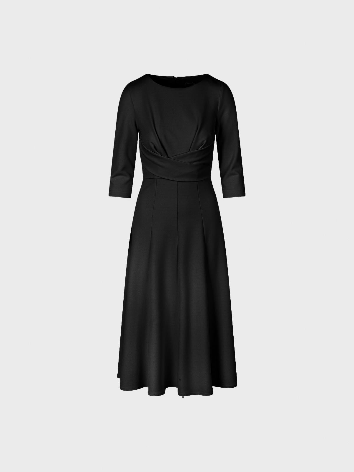 Abito in jersey crepe con scollo tondo,maniche lunghe,incrocio sul punto vita e gonna a teli