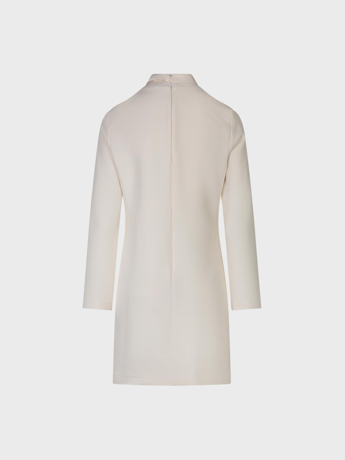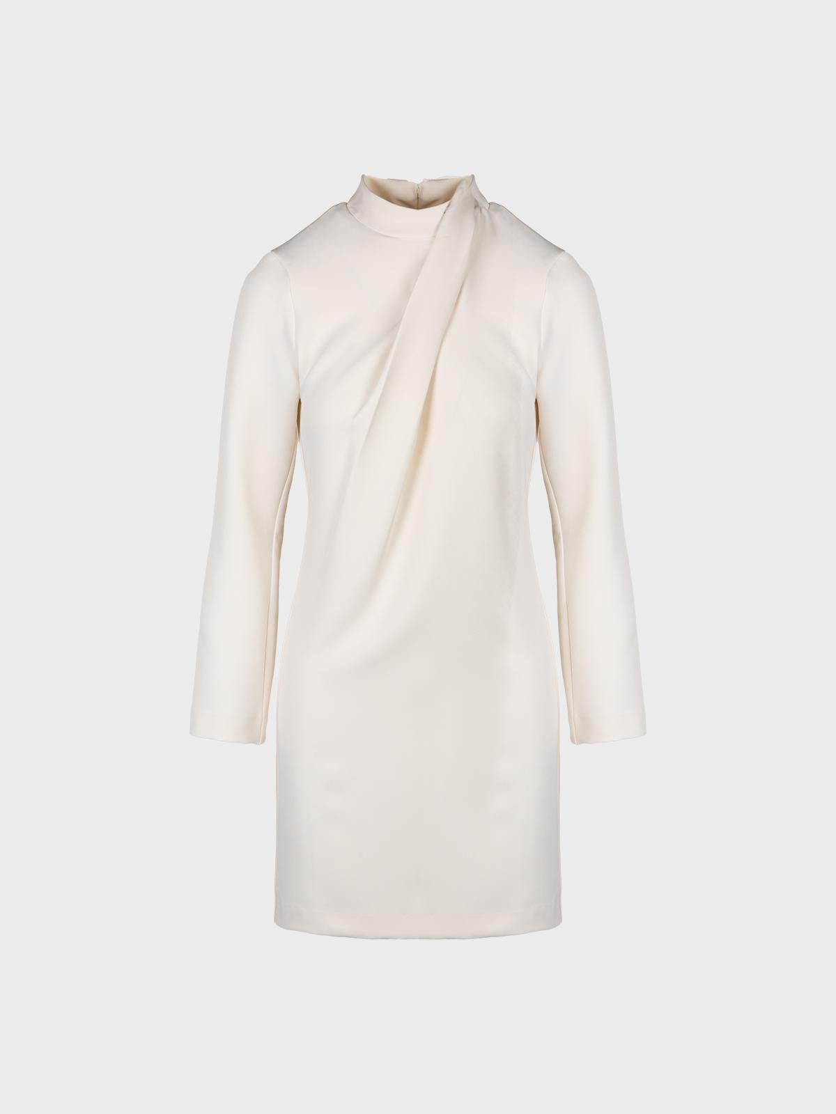 Abito in crepe tecnico con maniche lunghe svasate,pieghe nello scollo e zip invisibile dietro