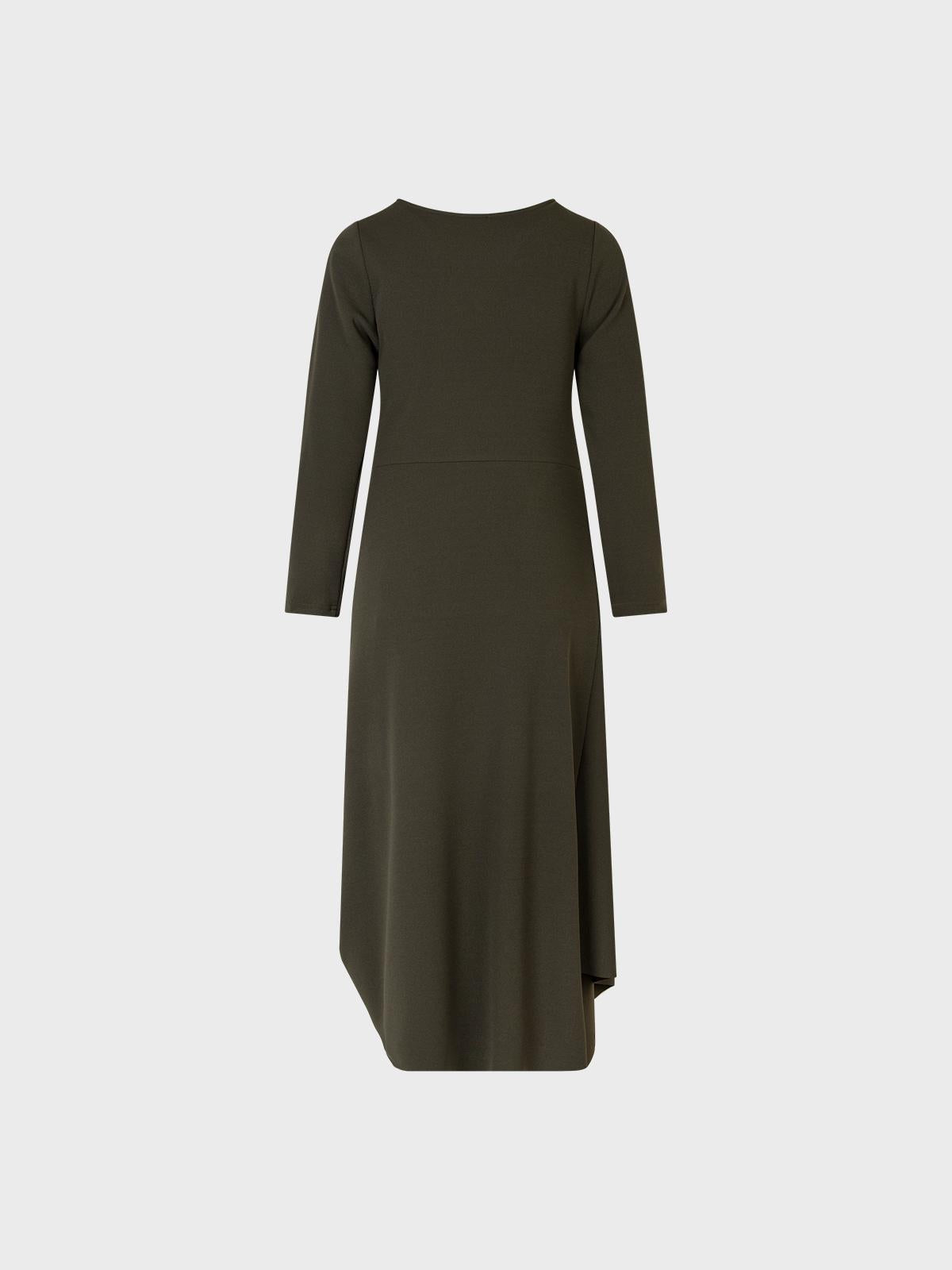 Abito in maglia crepe con scollo tondo,maniche lunghe e gonna asimmetrica