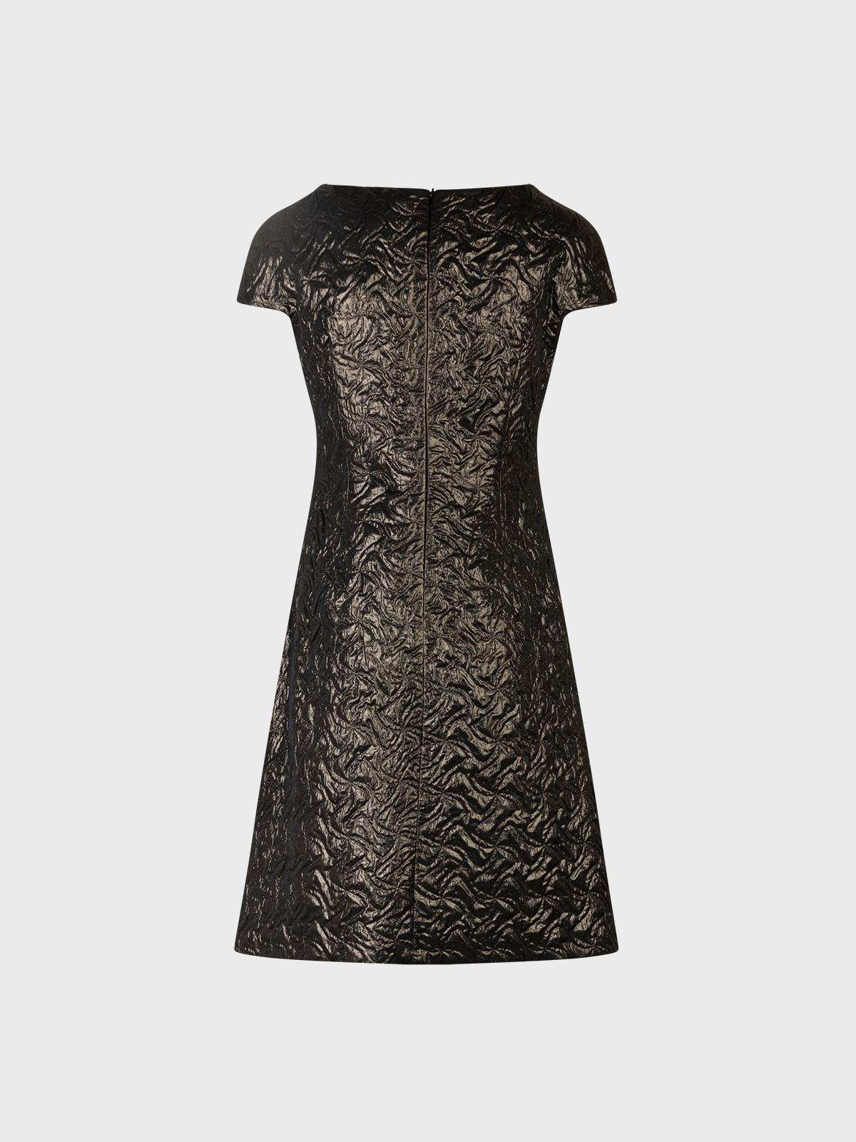 Abito jacquard con scollo tondo,maniche ad aletta e gonna svasata