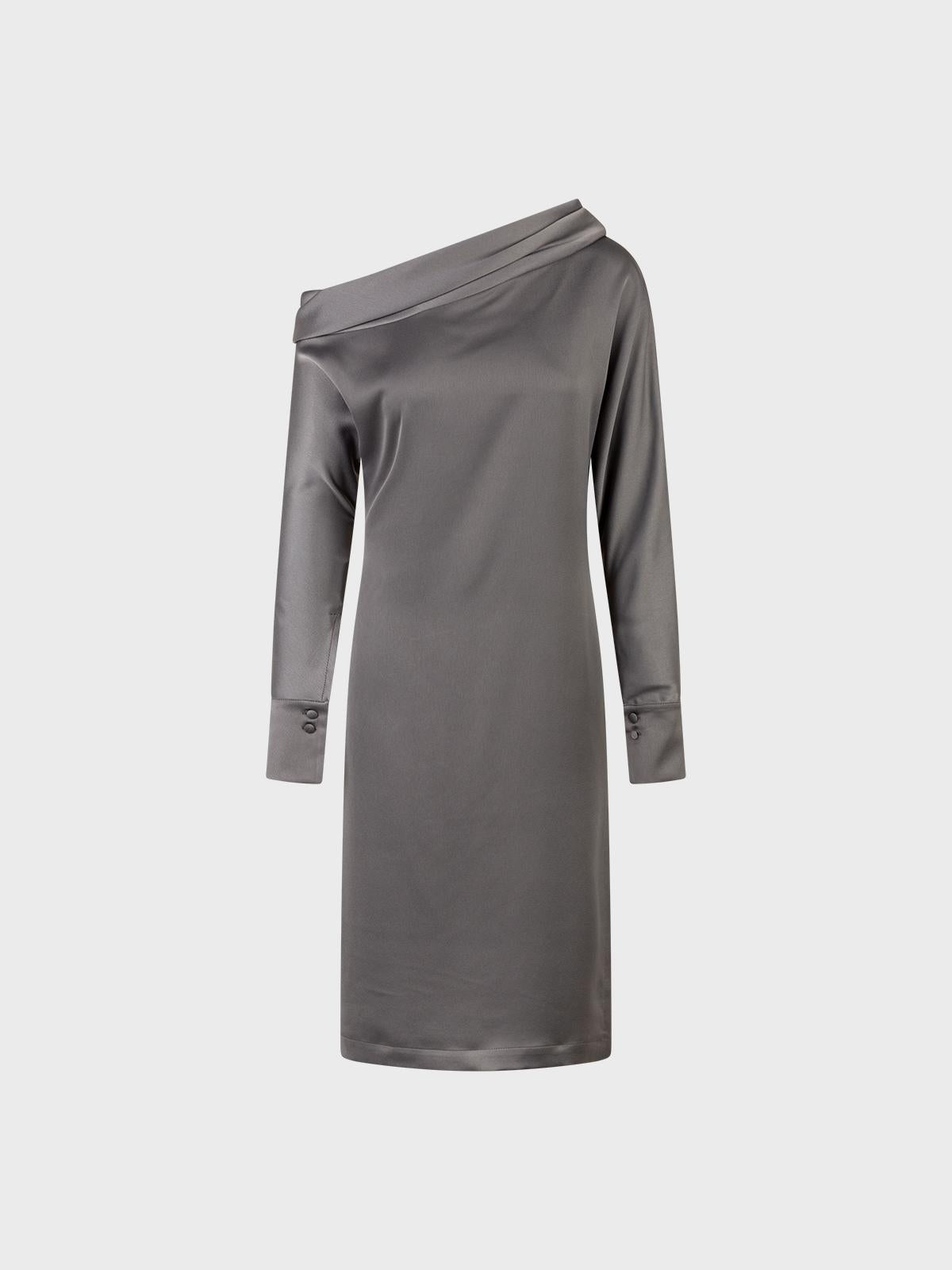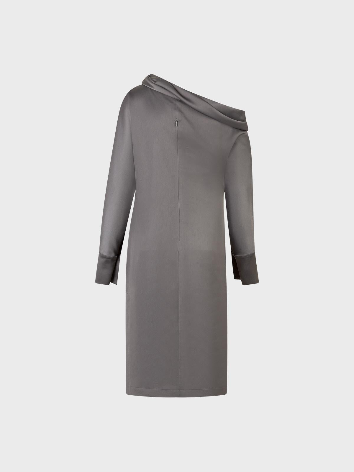 Abito longuette in enversatin tagliato in sbieco con maniche lunghe e scollo asimmetrico