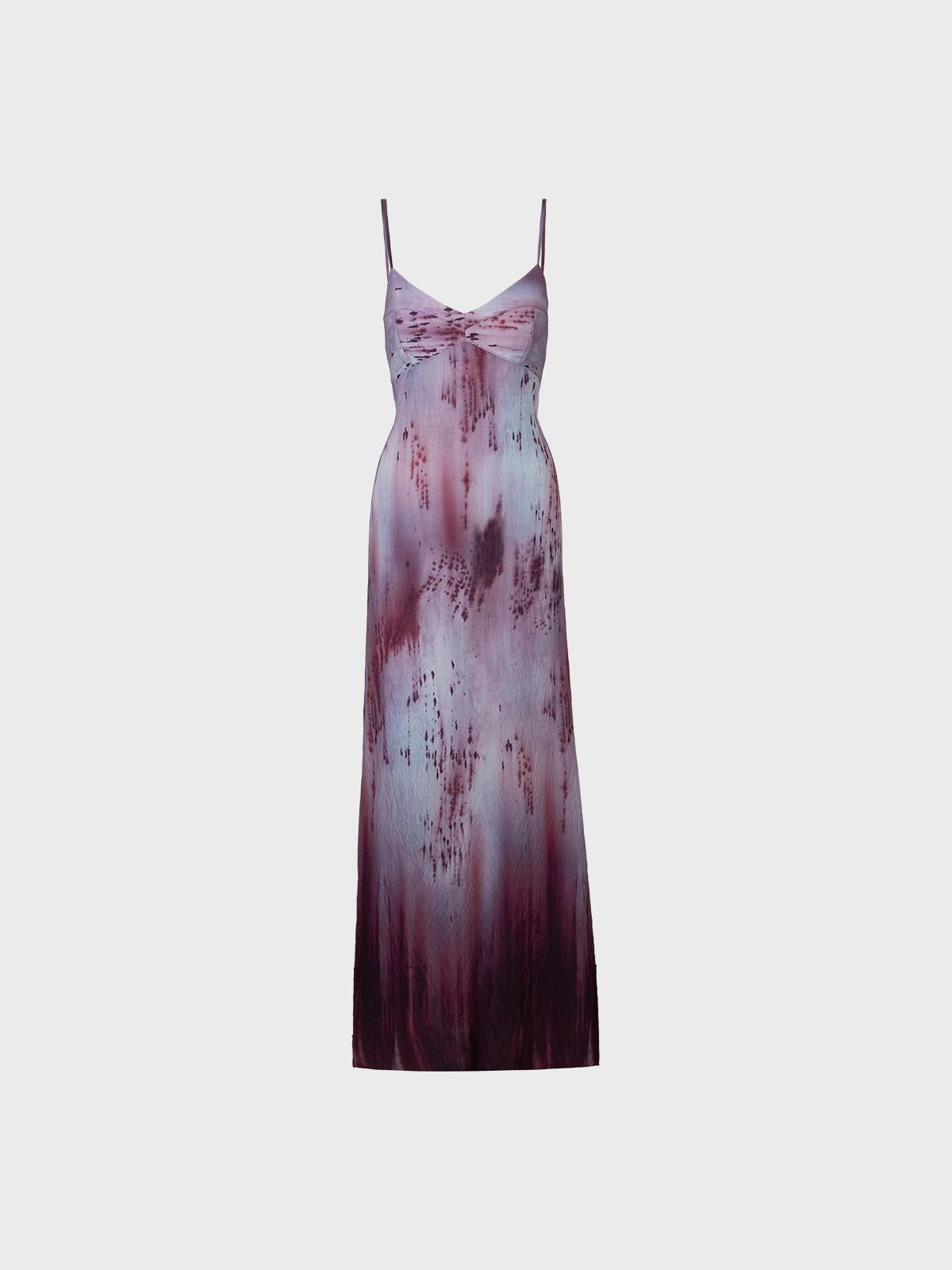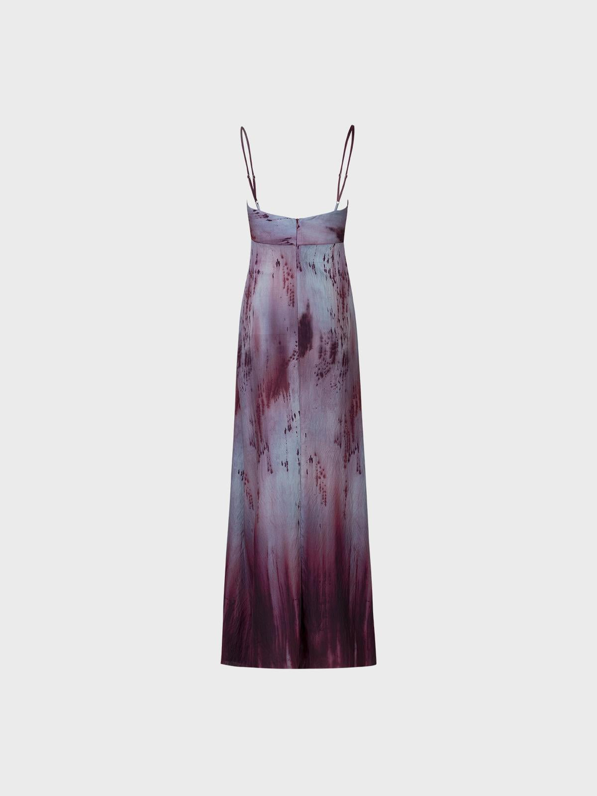 Abito lungo in viscosa stampata Scollo sottovesteZip invisibile nel centro dietro