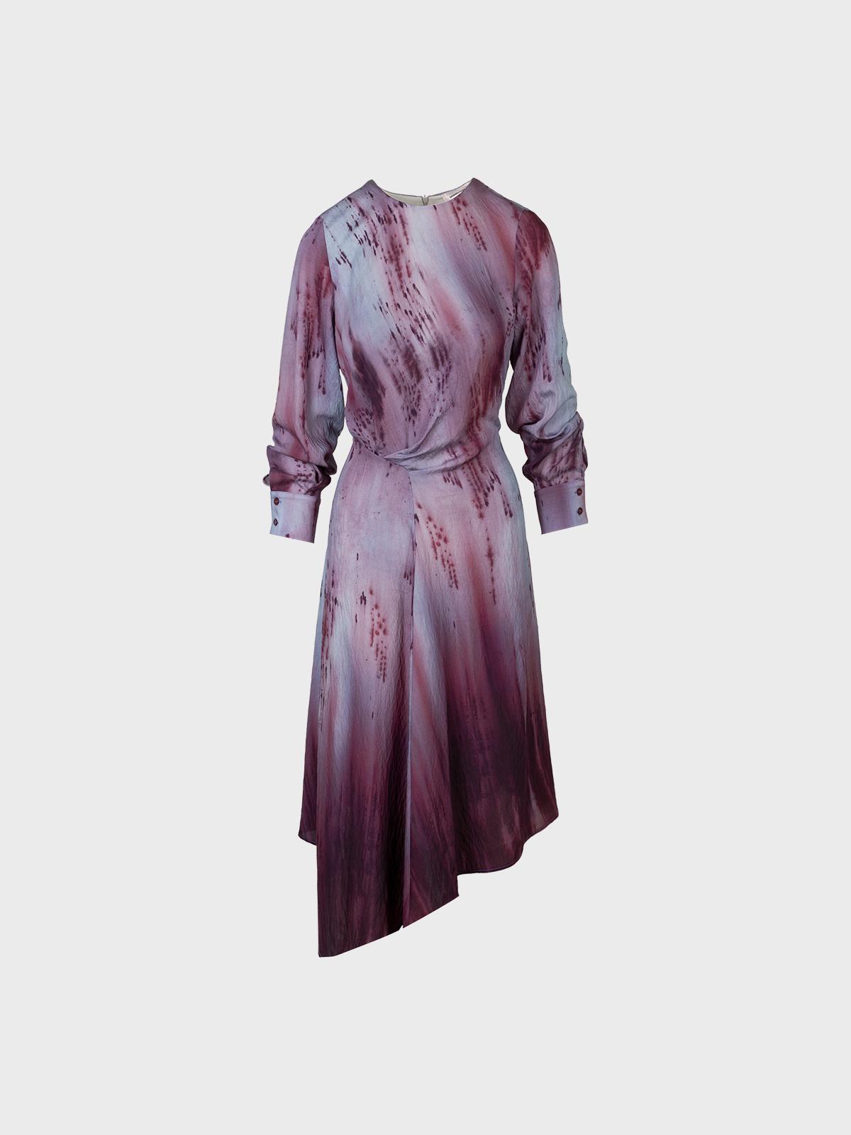 Abito midi in viscosa stampata con scollo tondo,maniche lunghe e riprese laterali
