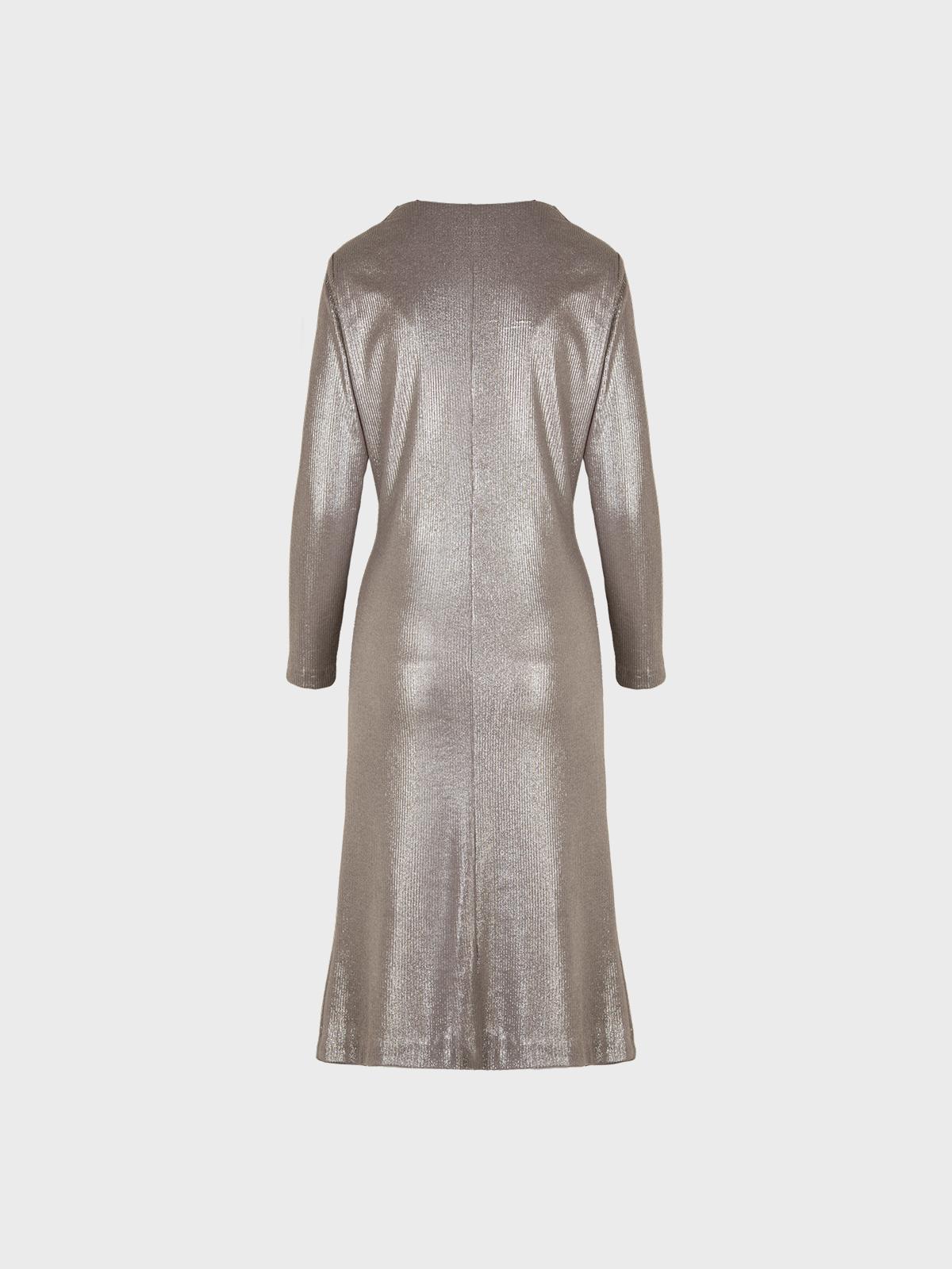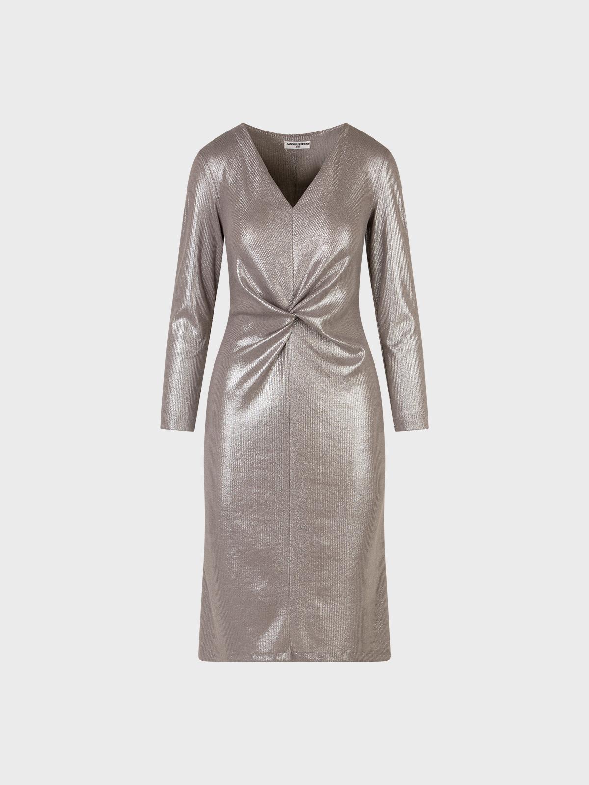 Abito scollo a v Arriccio davanti in maglia a costina con effetto lucido