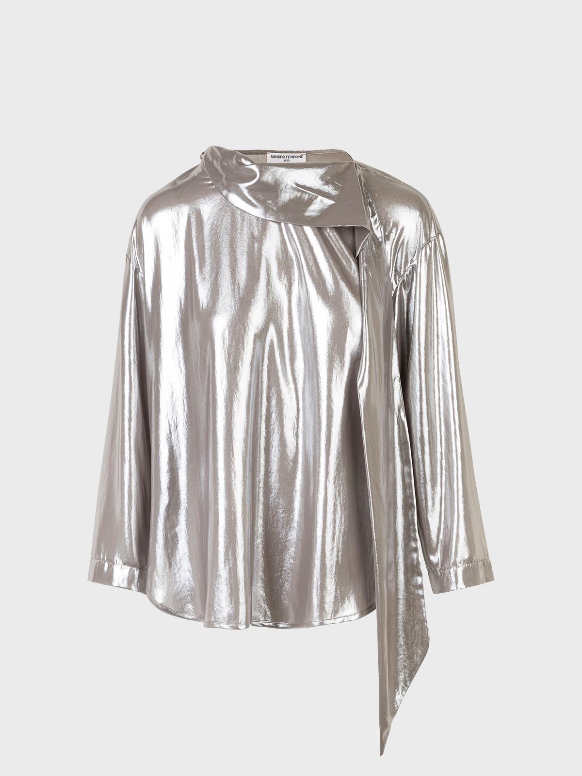 Blusa in georgette spalmata Effetto lucidoSciarpina da annodare sul collo