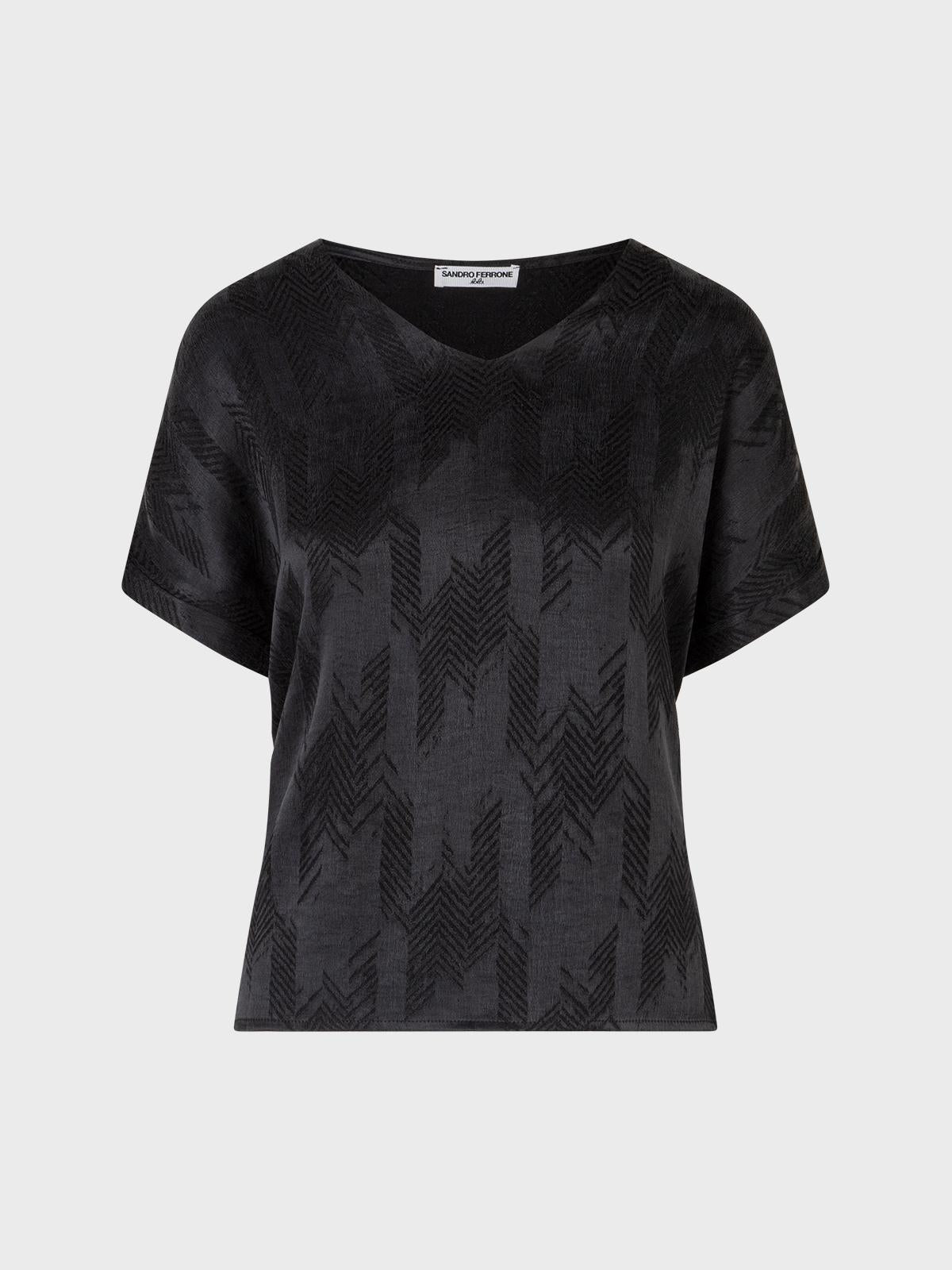 Blusa jacquard lavatoScollo a vRisvolto nelle maniche