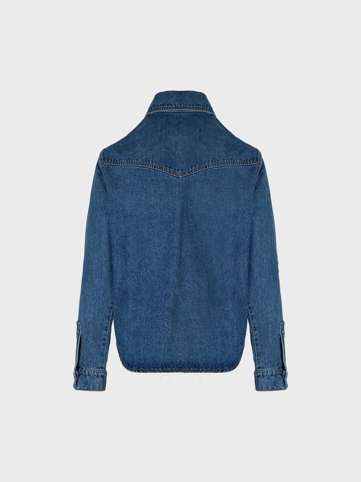 Camicia in denim Maniche lungheTasche applicateBottoni automatici in madre perlaImpunture in contrasto