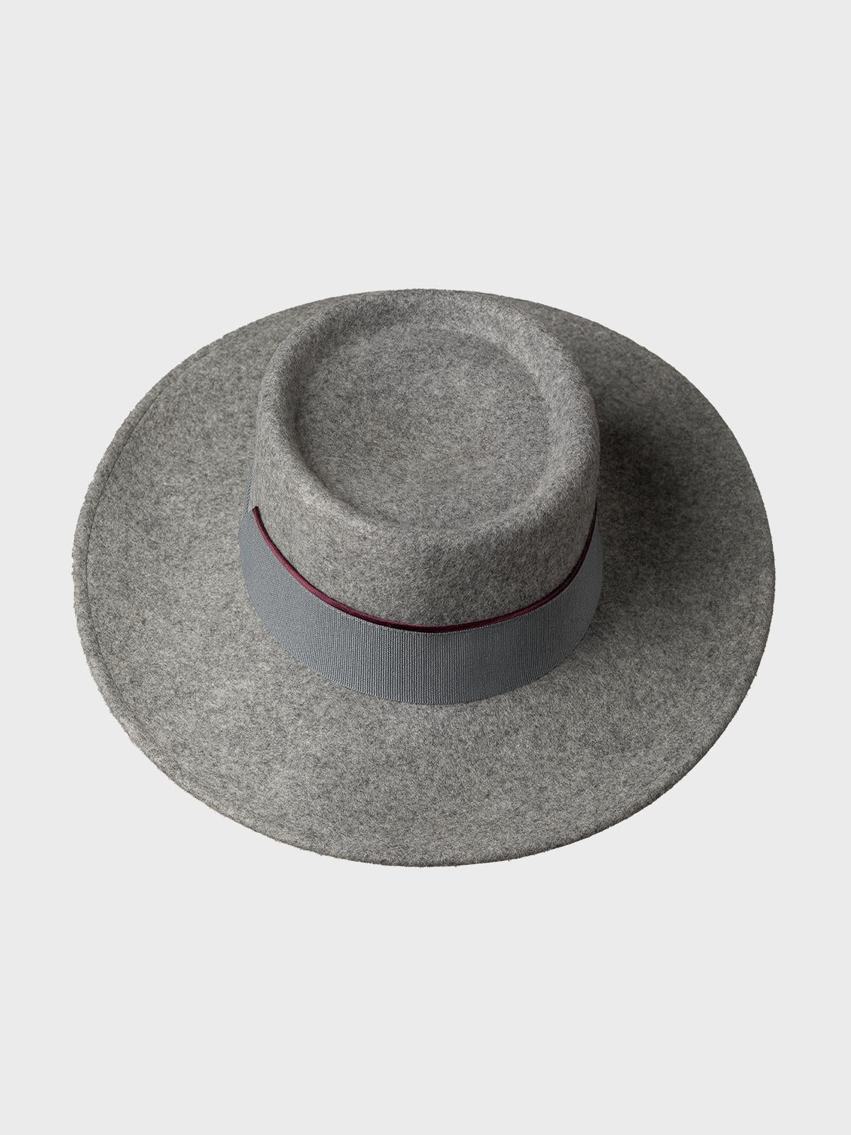 Cappello di feltro in misto lana con falda larga e gross grain alto e ripiegato laterale