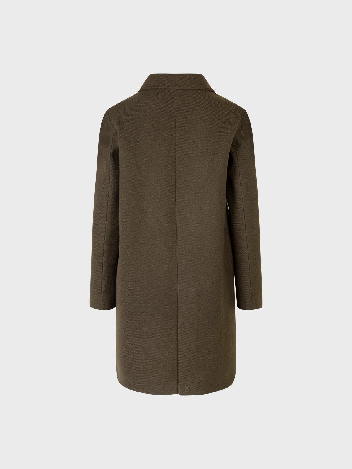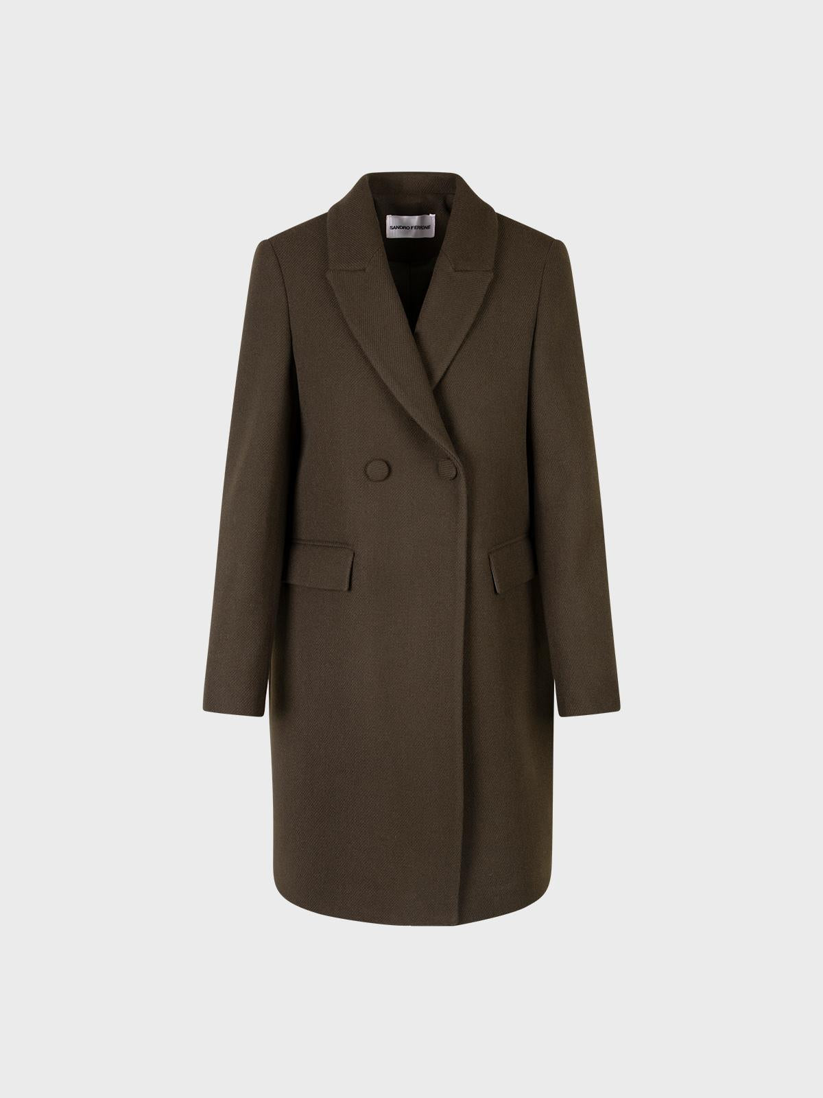Cappotto basico doppio petto con collo rever a lancia,spacco dietro e tasche a filo con pattina