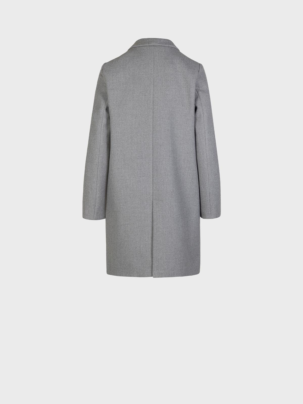 Cappotto basico doppio petto con collo rever a lancia,spacco dietro e tasche a filo con pattina