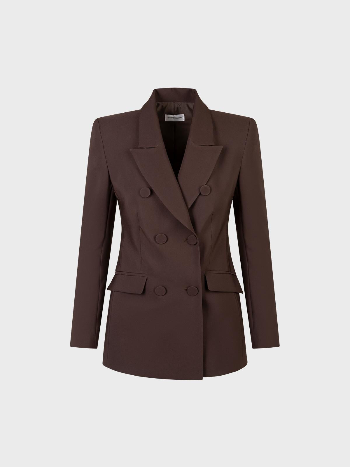 Giacca doppio petto in tessuto tecnico bielastico con revers a lancia e tasche a filo con pattina