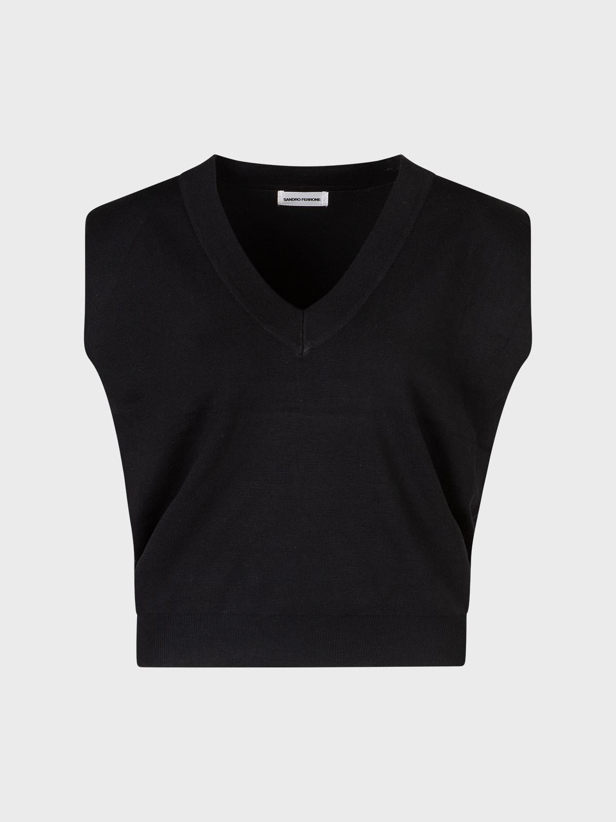 Maglia gilet smacchinato con scollo v e spalline inserite