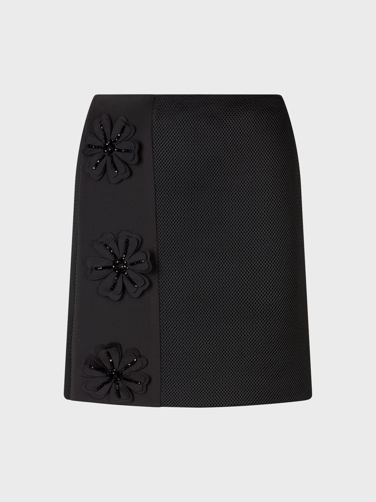 Gonna in microrete doppiataInserto di neopreneFiori ricamati