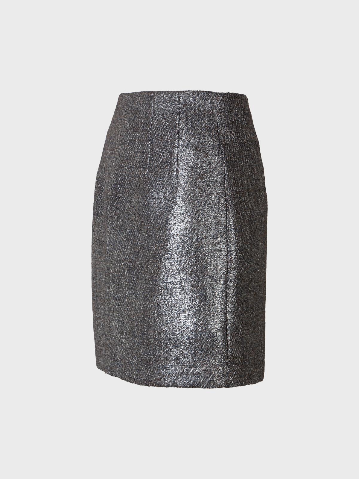 Gonna laminata in misto lana senza cinturino in vita e zip invisibile nel centro dietro