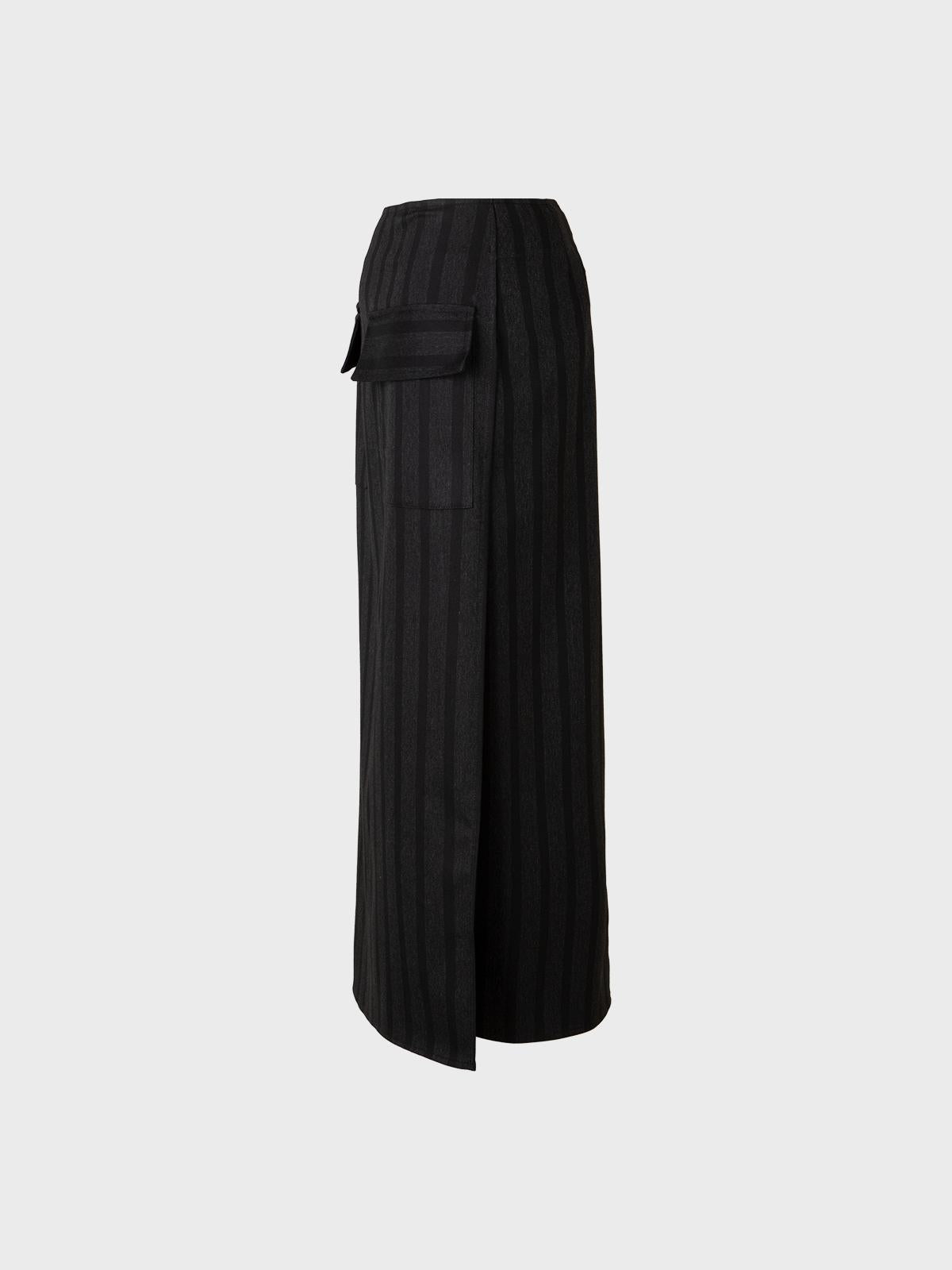 Gonna midi in poliviscosa rigata Spacchi lateraliTasche applicate