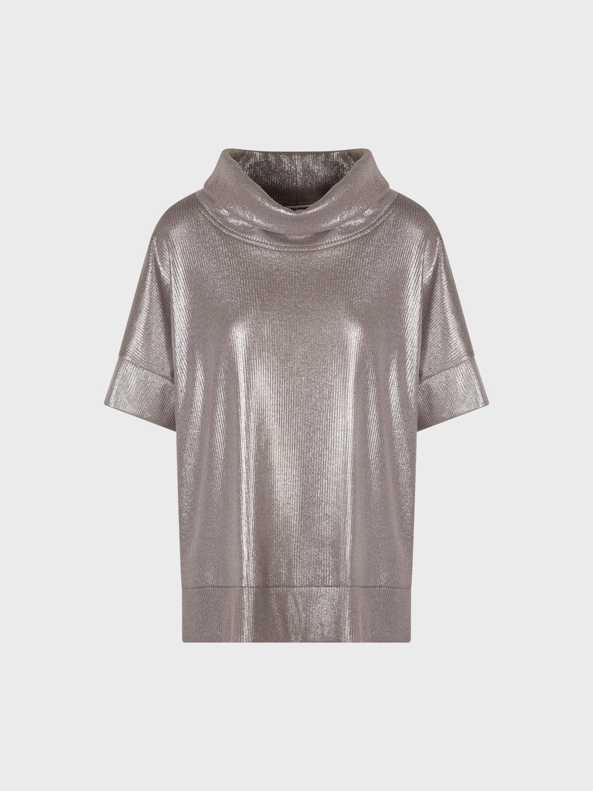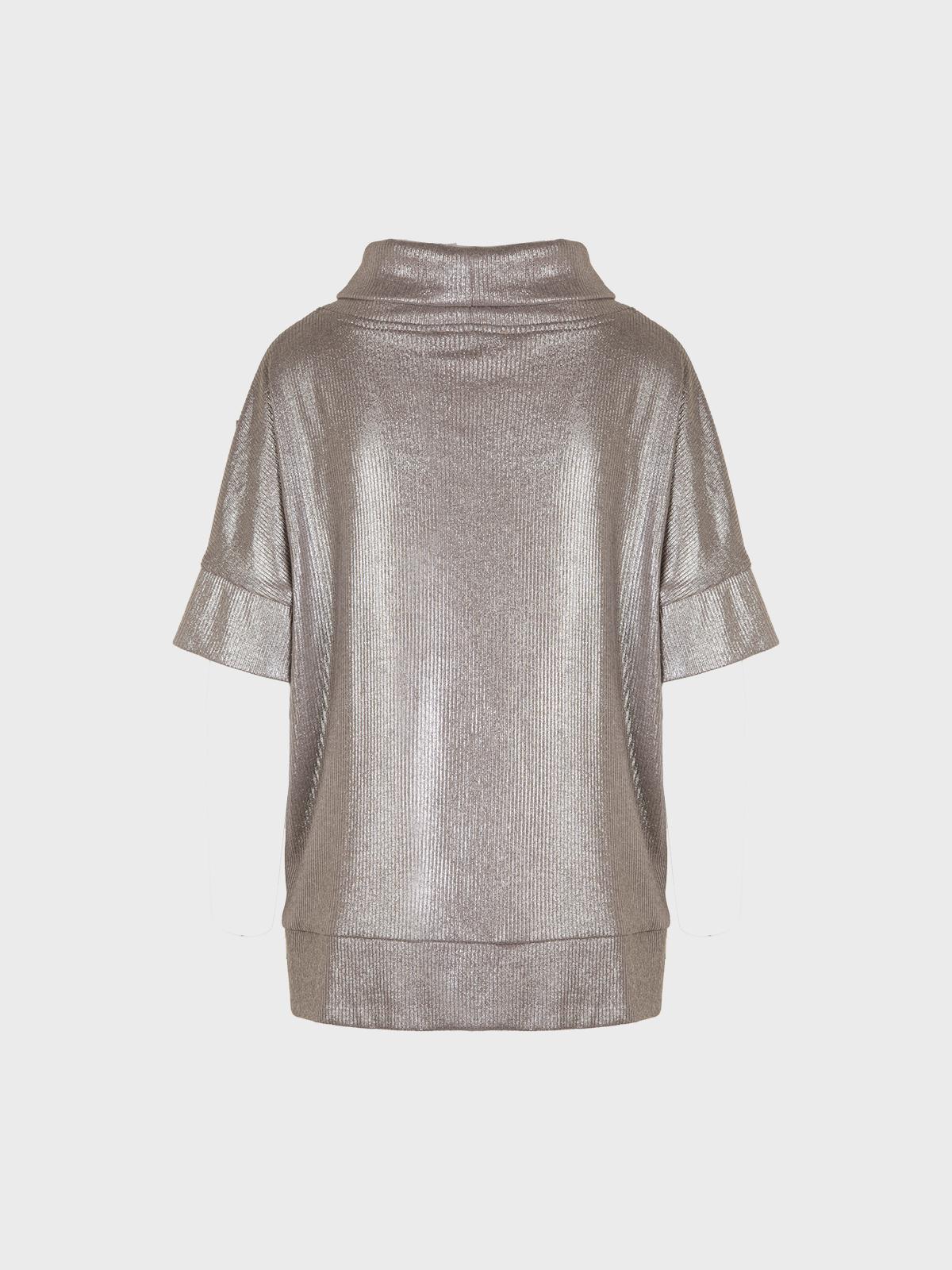 Maglia in costina con effetto lucido tono su tonoCollo ciambella