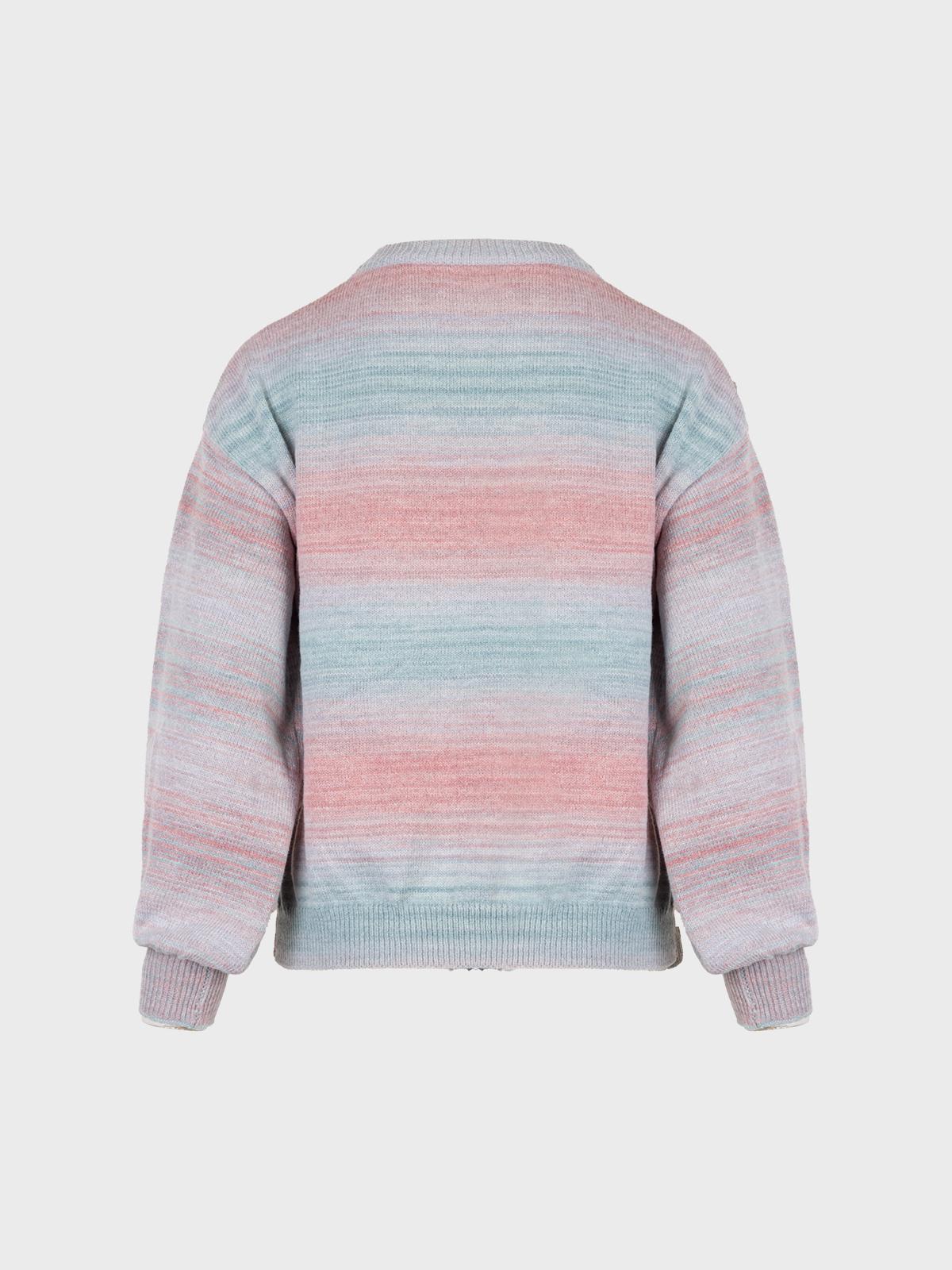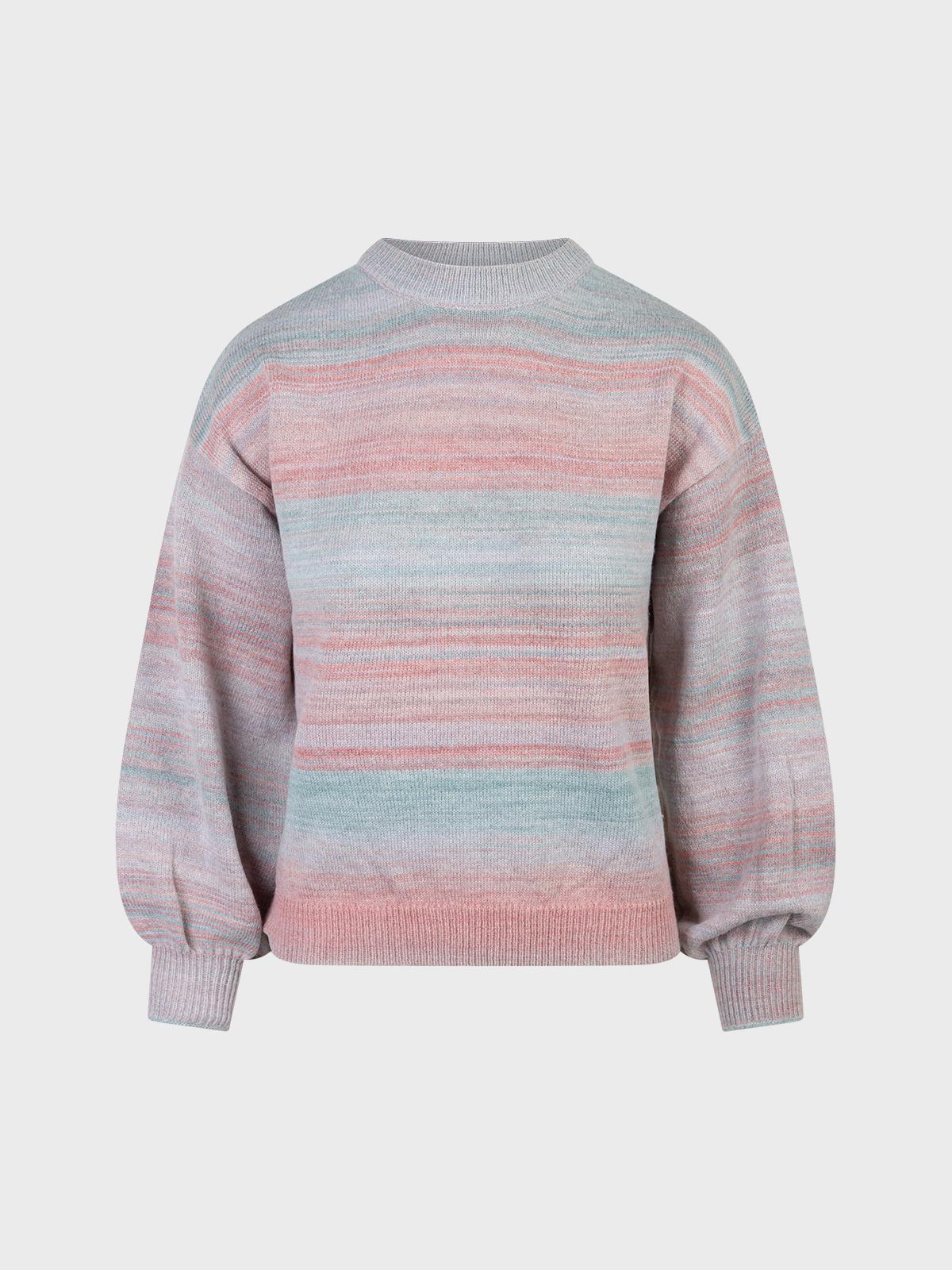 Maglia smacchinata in filato melange con scollo tondo e maniche lunghe