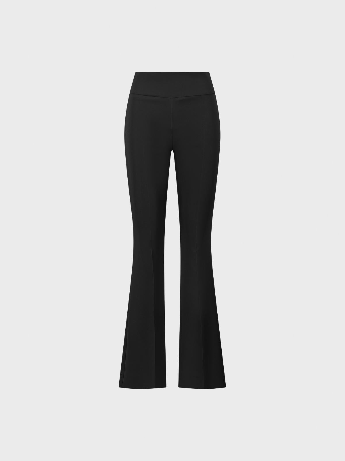 Pantalone a zampetta in tessuto tecnico bielastico con cinturino alto in vita e zip in metallo dietro