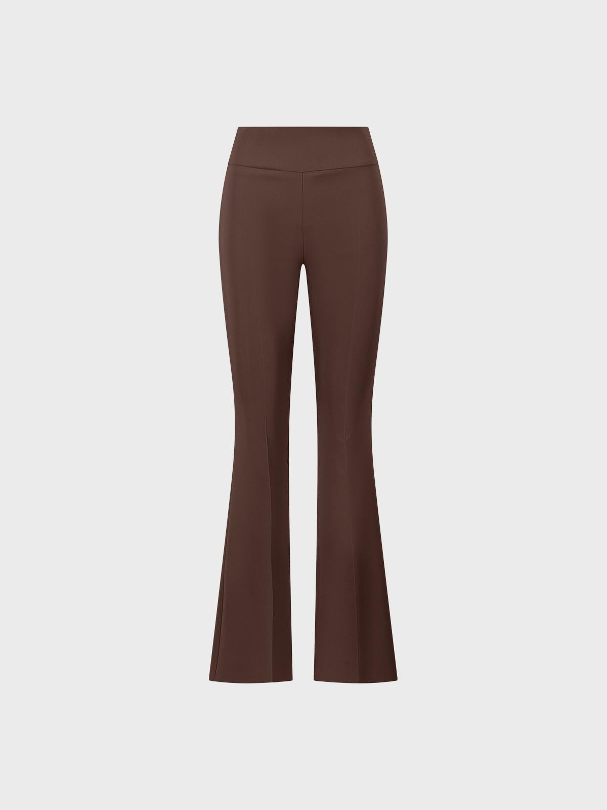 Pantalone a zampetta in tessuto tecnico bielastico con cinturino alto in vita e zip in metallo dietro