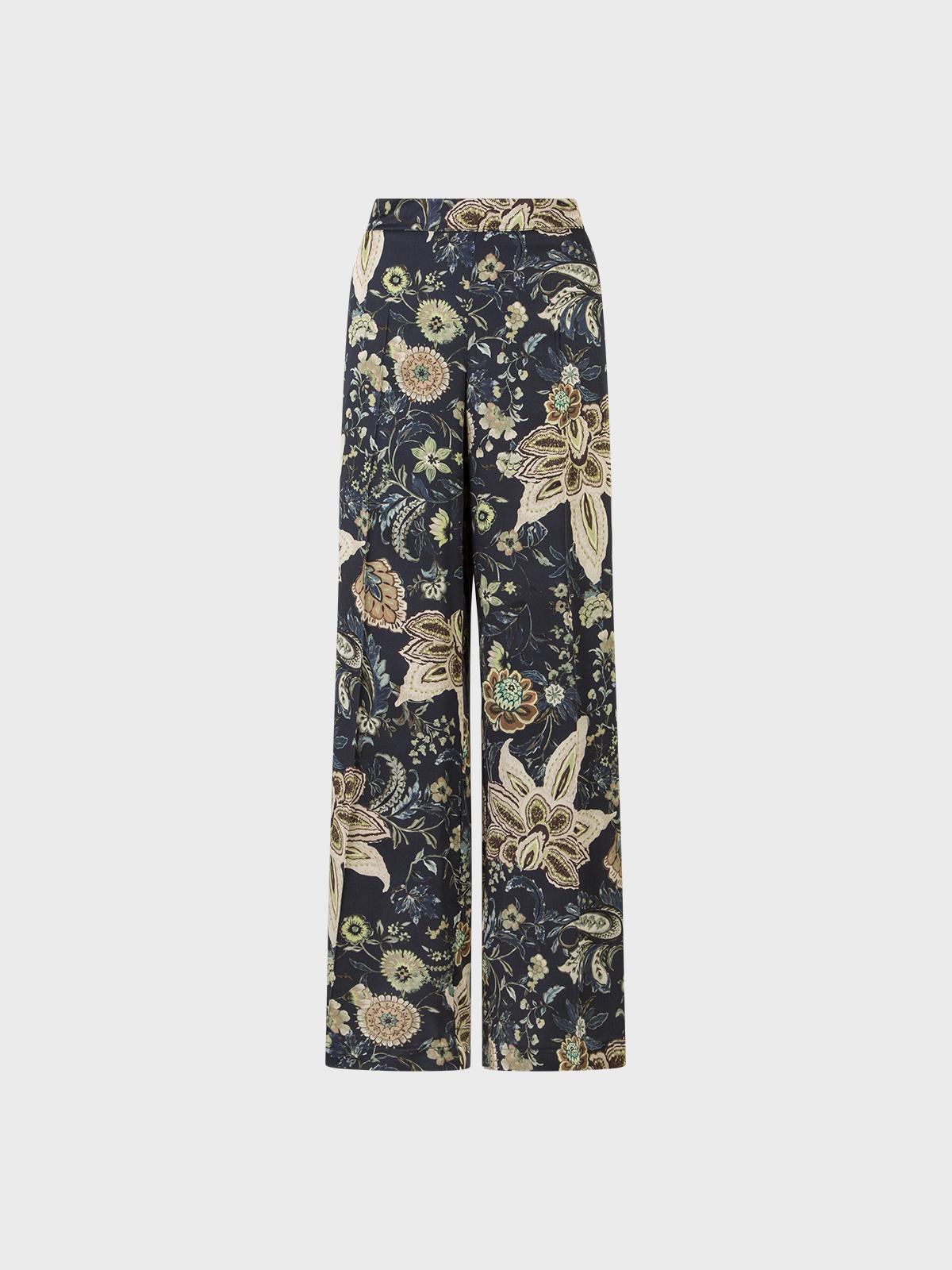 Pantalone stampato in viscosa TascheElastico in vita Zip nascosta