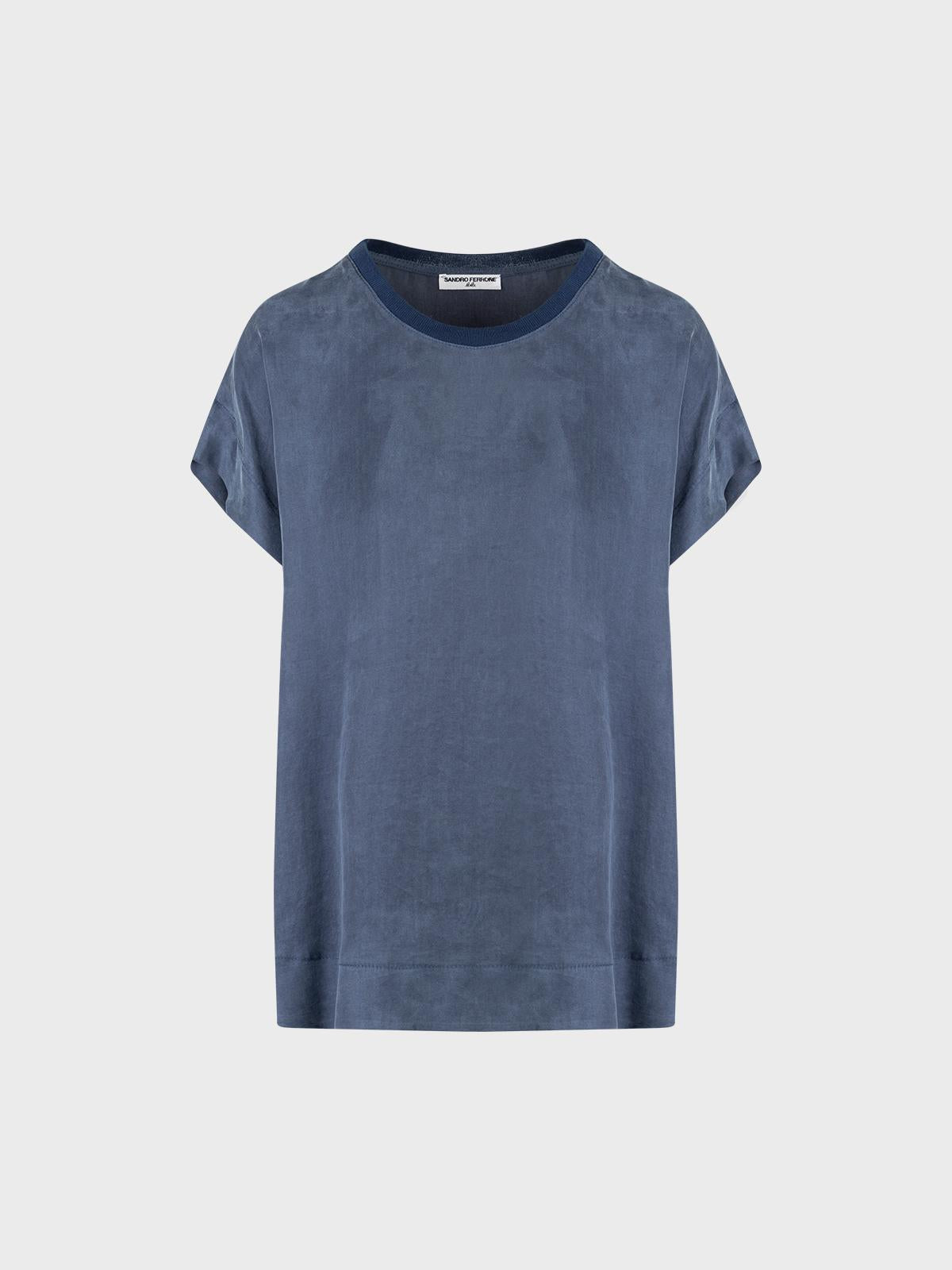T-shirt in tessuto effetto lavato con collo in costina