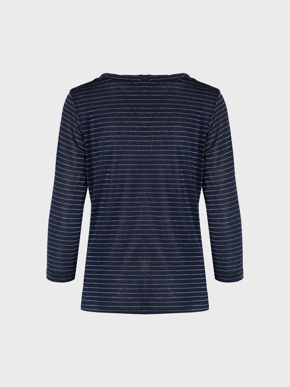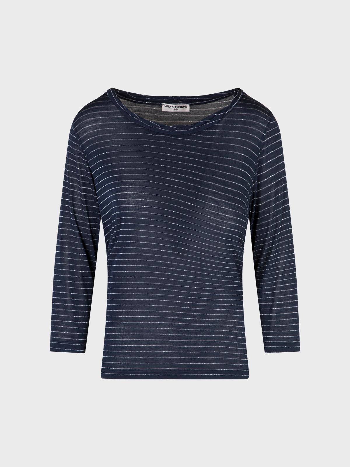 T-shirt con scollo tondo a torcion,misto seta con motivo di riga lurex